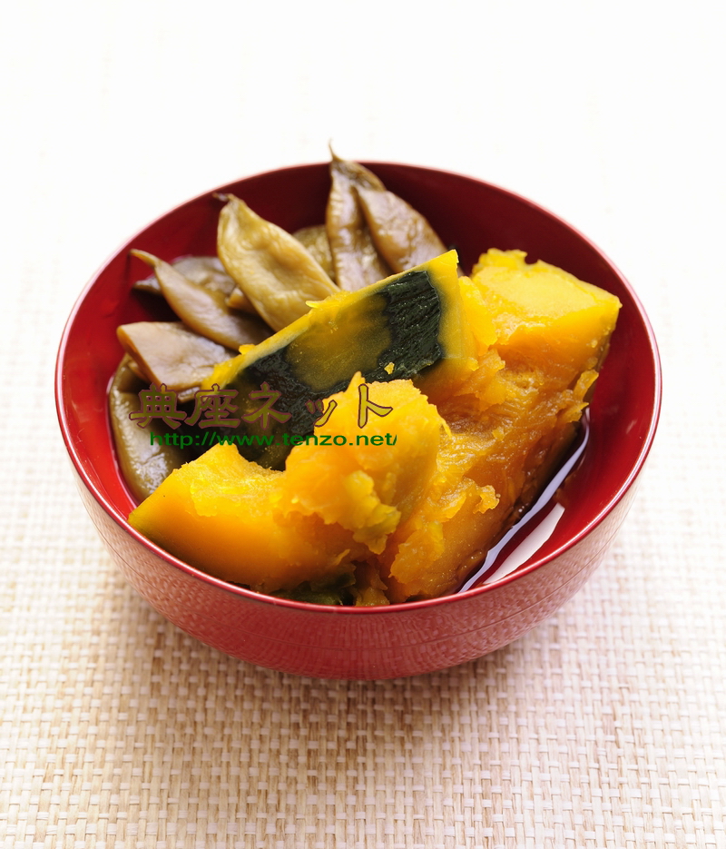 今年のお盆お供え膳のラストはカボチャのうま煮とインゲンの田舎煮です。