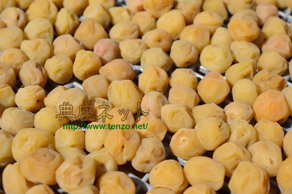 今日は夏の土用の日です。雲一つない晴天の中で梅を干します。